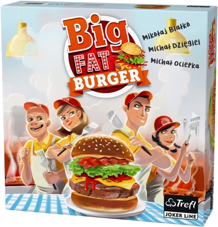 Big Fat Burger / Mikołaj Białko, Michał Dzięgiel, Michał Ociepka - Podłęże : Trefl ; copyright 2018 - 1 pudełko (wiele elementów) ; 30 x 30 x 8 cm.