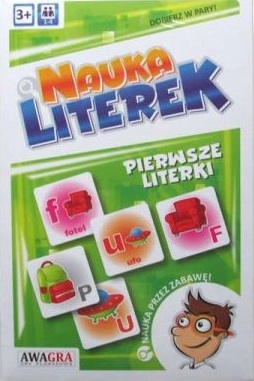 Nauka literek : pierwsze literki. - Mrągowo: PPUH "FAN", [2019]. - 1 pudełko (46 kart) : ilustracje kolorowe ; 19x28x5 cm.